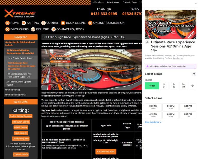 Please note that when we reopen the Edinburgh centre will only feature Senior Karts, and will therefore be strictly age 12 and over (ages 12+ sessions will be added to our online booking early October).