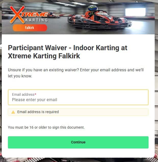 Xtreme Karting Falkirk RegistrationNEW Waiver Software: We have now gone live with new booking / waiver software system specific for the Falkirk track.Please click to complete the new waiver (even if you have previously registered with us).NEW waiver link for sessions on / after Wednesday 12/11 : https://waiver.roller.app/XtremeKartingFalkirk/home